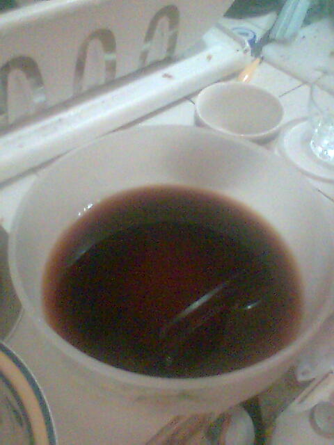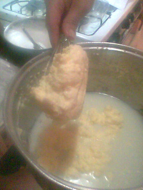 7.Preparas el café para que quede amargo y se le hecha un poco de cacao para sabor y un chorrito de licor y se bate.