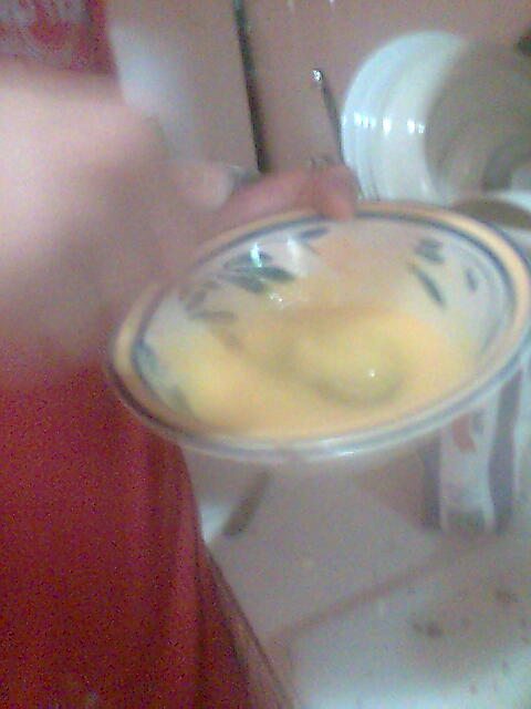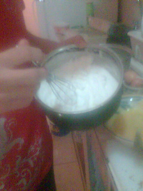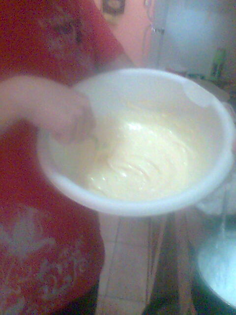 4.En otro platón se agregan las yemas y lo que queda del azúcar y se baten pero lentamente hasta que quede compacta.